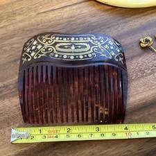 Mixed ladies lot of different antiques/vintage items. Includes either a monocular or one side of a pair of spectacles with attached chain and hairpin Three decorative straight pins without end stopper One heavy celluloid Celluloid...