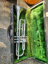 You are buying both trumpets from estate sale as you can see the Silver trumpet will need some work the brass one seems pretty good shape. All the valves pump nicely some of the slides are stuck from still unplayed. View pictures ...